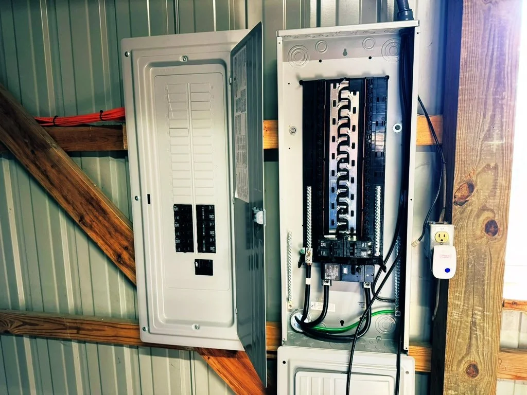 This project consisted of bringing an additional 400AMP of continuous single-phase service to BBT East, BitsBeTrippin HQ. Our facility is a steel construction 80x40ft 3200sqft building hosting our front office, studio, work center for GPU/ASIC Repair and over 2000 sq/ft dedicated for indoor storage. Our work center required additional amperage for volume testing of ASIC miners along with bringing in enough electricity to support both a 50AMP travel trailer and a 12kw EV Charger from Ubiquiti. The site supports a total of 16 continuous ASIC miners at 240v operating at up to 20AMPs each, while charging an EV at 12KW and a Travel Trailer at 50AMP.